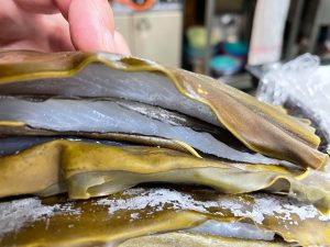 お刺身の食べ方のひとつ「昆布じめ」。お刺身といえば、醤油やわさびで食べることが多いですが、そのほかにもいろいろな食べ方があります。今回は、その中のひとつ「昆布じめ」について書きたいと思います。